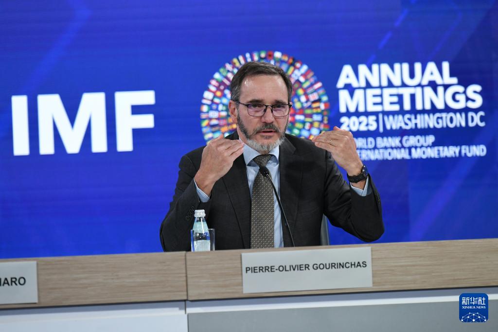 10月14日,在美国华盛顿,国际货币基金组织首席经济学家皮埃尔-奥利维耶·古兰沙在《世界经济展望报告》新闻发布会上讲话。李睿 摄