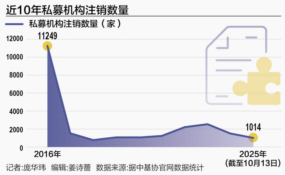 最新数据显示,截至2025年10月13日,自2016年以来的近10年间,私募机构注销数量高达24171家。