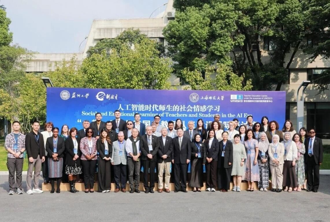 11月10日,由苏州大学新教师基金发起,联合国教科文组织教师教育中心、苏州大学新教师基金联合主办的“一带一路”共建国家教师队伍建设国际研讨班,在联合国教科文组织教师教育中心顺利落幕。本次研讨班自10月27日启动,为期15天,以“人工智能时代的教师与学生的社会情感学习”为核心主题,汇聚了俄罗斯、秘鲁、巴勒斯坦、马来西亚、蒙古、肯尼亚、乌兹别克斯坦、哈萨克斯坦、尼泊尔等20个国家和地区的44位教育领域代表,涵盖各国教育官员、资深学者、一线校长、教师及教育管理者,他们带着对人工智能时代教育变革的深度思考,共同探索社会情感学习的实践路径,为“一带一路”教育合作注入新活力。