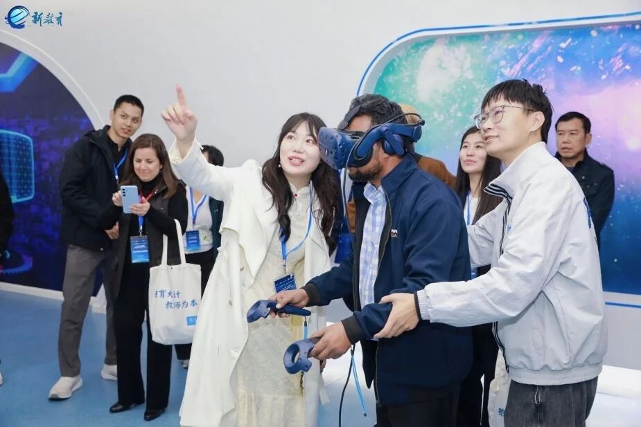 参访期间,代表们还参与了各校特色文化课程,与学生共同体验苏绣、剪纸、扎染、糖画制作、传统美食制作等非遗项目,在传统技艺传承中感受中国教育的文化底蕴;在江苏省海门中等专业学校,大家还体验了沉浸式VR课程,感受科技与教育融合的创新成果。