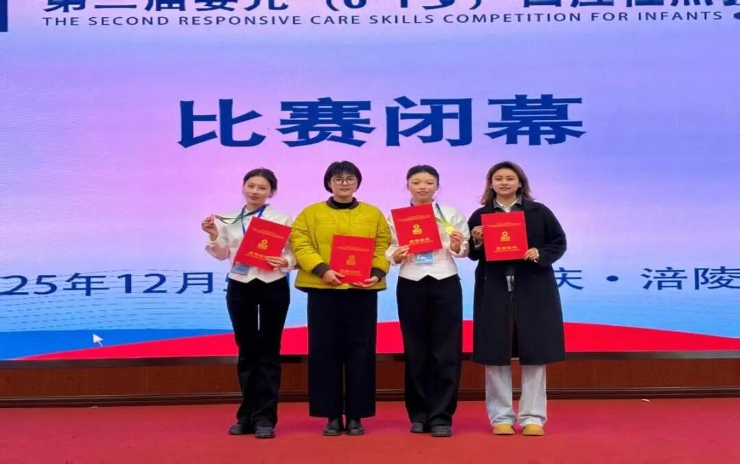 据悉,据悉,本次大赛吸引了来自全国25个省、93所院校的400余名师生参与,竞赛内容紧密对接婴幼儿照护行业标准与岗位实际需求,涵盖婴儿生理需求识别、情感交流、安全护理、技能答辩等多个方面,全面检验参赛选手的理论素养、实操能力与综合职业素养。经过理论考核与实操技能两轮激烈角逐,黔南医专2023级助产班学生王永菊荣获全国总决赛一等奖,其指导老师严锐获“优秀指导老师”称号;2023级老年护理班学生皮凤婷荣获全国总决赛三等奖。同时,学校荣获“最佳组织奖”。