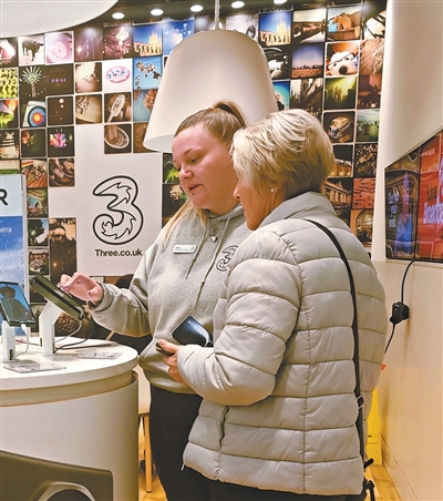 在一家英国通信运营商零售店内,几名消费者正在荣耀手机专柜前挑选产品。“这款手机是今年5月上市的产品,配备较好的AI功能,摄影摄像效果不错,很受消费者喜爱。”门店助理销售经理凯文介绍。