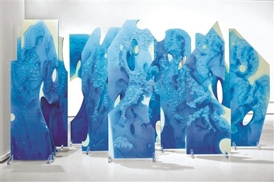 沈烈毅的装置雕塑《雨》营造出水面涟漪的状态。光线在作品表面缓慢流动,涟漪让人联想到雨水落下时轻微而有节奏的声响。视觉经验在这里自然延伸到听觉想象,观者在观看过程中会不自觉地放慢脚步,空间也随之安静下来。《雨》对面的墙上悬挂着梁缨的《鱼自乐》,水与鱼在空间中形成一种松散而自然的关联,这种关系并未被刻意提示,却可以看见策展的巧思。展厅中由半透明屏风构成的装置,依赖光影变化来展开空间层次,屏风之间的虚实关系为视线留下了缓冲与停顿的余地,很容易将人带回到园林中缓慢行走的状态。这些作品都不急于给出明确指向,而是在空间中留出足够的空白,使观者的感受和想象得以自然延展。