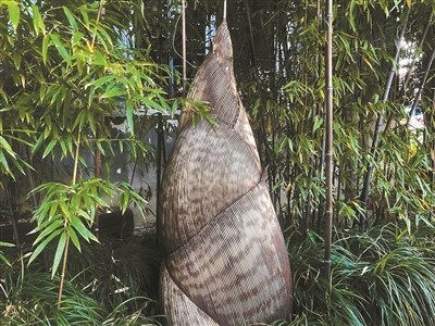 杨勋的油画《虹竹》以浓烈而层次丰富的色彩描绘竹的生长状态,画面中竹的形象被拉伸、重叠,形成持续向上的视觉节奏,更多指向一种生长中的状态。郭子龙以不锈钢材质塑造竹叶形态,金属表面在光线照射下产生细微变化,竹叶在坚硬材质中呈现出轻盈而流动的视觉效果……展览让观众发现,原来有这么多以竹为切入的、令人耳目一新的作品。