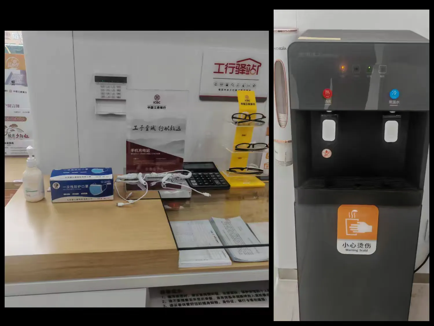 走进工行泗阳桃源路支行营业网点,暖意扑面而来。厅堂内特设“工行驿站”,为到店客户精心准备了热饮,搭配独立包装的医用口罩,凡士林等冬季必备用品,无论是办理业务的客户,还是户外作业的环卫工人、快递小哥,均可免费取用,歇歇脚、暖暖心。