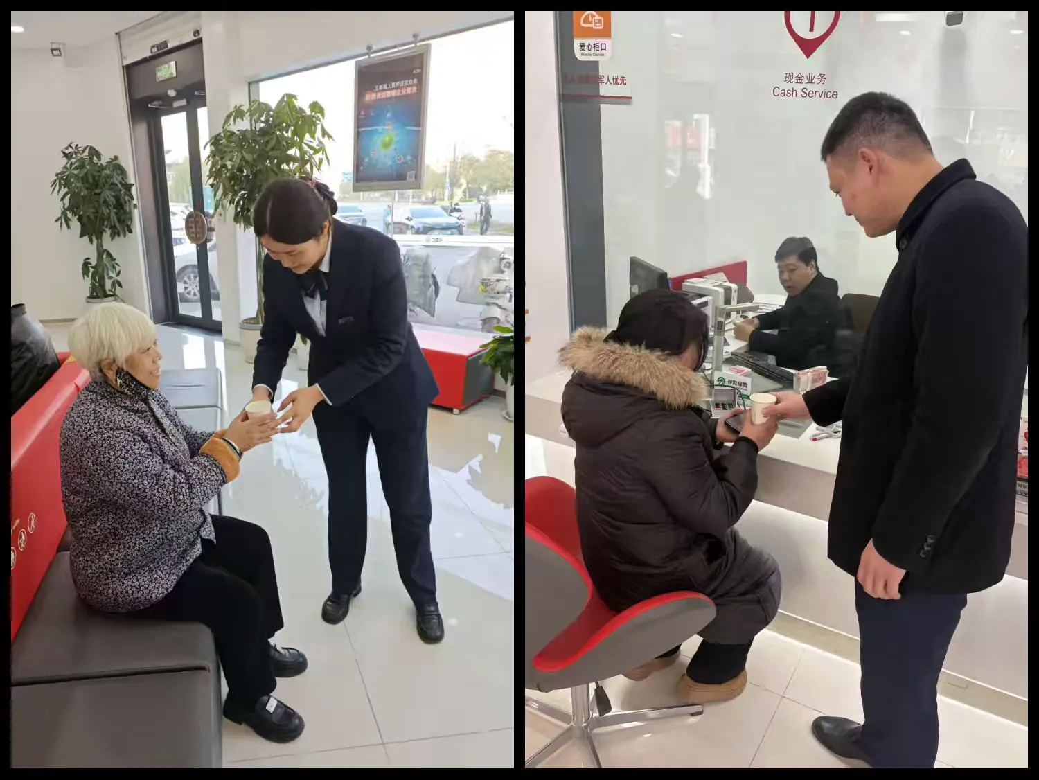 对到店客户,大厅工作人员主动上前问候,为等候的客户递上热饮,细致询问业务需求,让每一位进店者都能感受到“家”一般的温暖。