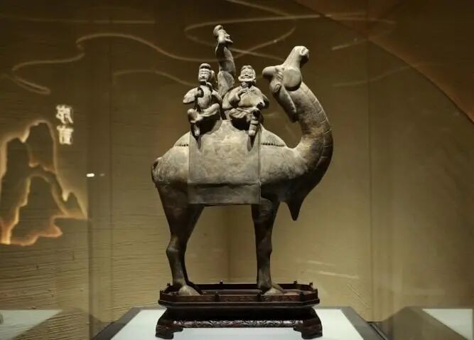唐代鎏金錾花骆驼载乐俑。熊伟 摄