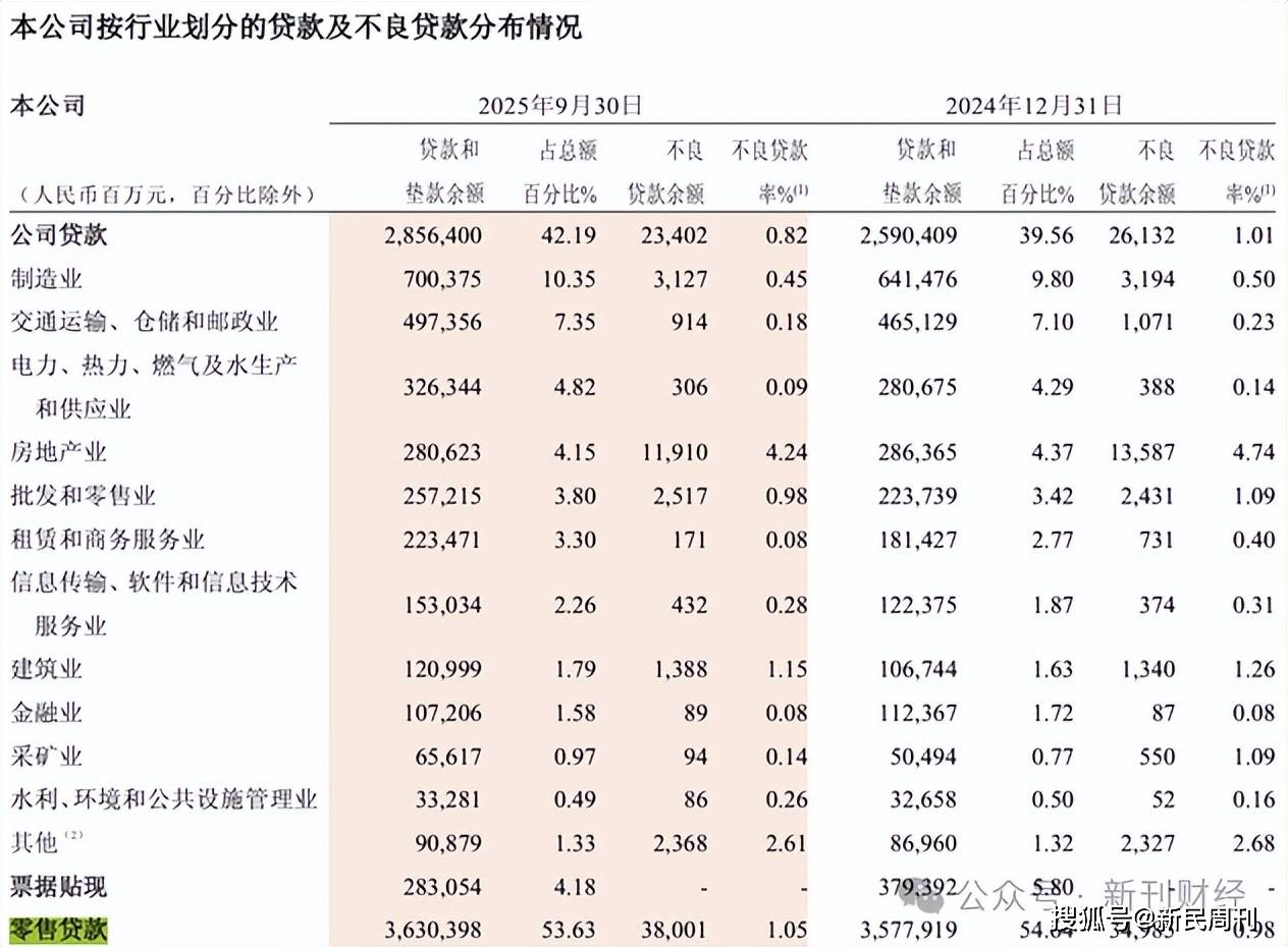从风险生成端来看,招行的不良生成率呈现逐季优化态势,前三季度年化不良生成率从 1.00% 降至0.96%,风险释放的节奏得到有效控制。不过,“零售之王”的头衔也带来了相关的隐忧——截至2025年三季度末,招行零售贷款不良率升至1.05%,呈现缓慢抬升趋势。这种趋势与宏观经济低迷之下个人信贷需求乏力、居民还款压力加大密切相关,但也与招行零售业务占比过高脱不开干系。