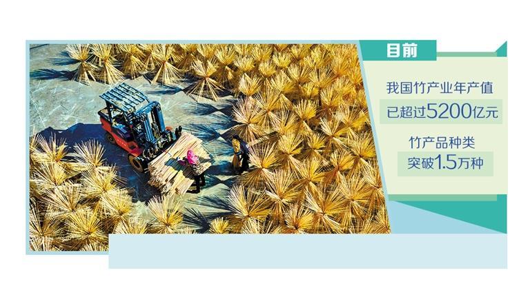 目前,我国竹产业年产值已超过5200亿元,竹产品种类突破1.5万种。全国竹加工企业达1万多家,全产业链吸纳就业人数超过2900万人。其中,福建、四川两省竹产业年产值均突破千亿元。全国有近10个县市的竹产业年产值超过百亿元。竹产业已成为许多竹产区的支柱产业和新的经济增长点。