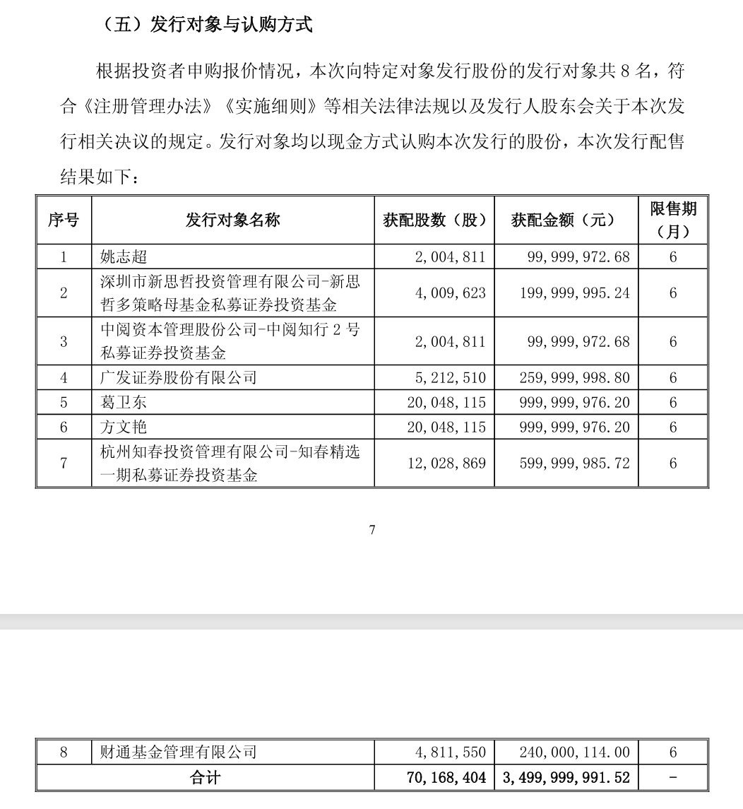 2月10日晚间,江淮汽车总募资金额接近35亿元的定增股份获配结果正式出炉,包括葛卫东和方文艳两大牛散和三家知名私募在内的8名投资者累计获配7016.84万股公司定增股份,获配价格为49.88元/股。
