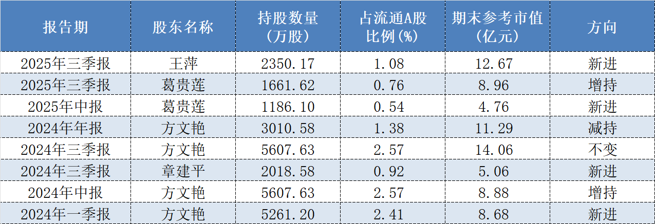 方文艳近年来也曾多次出现在A股上市公司前十大流通股东之列。东方财富网数据显示,截至2025年三季报,方文艳同时位列先导智能第五大流通股东和厦钨新能第七大流通股东,期末持仓参考市值分别高达15.43亿元和3.45亿元。根据海利生物此前披露的公告,方文艳(不排除同名的情况,下同)也是知名牛散章建平的“配偶”。