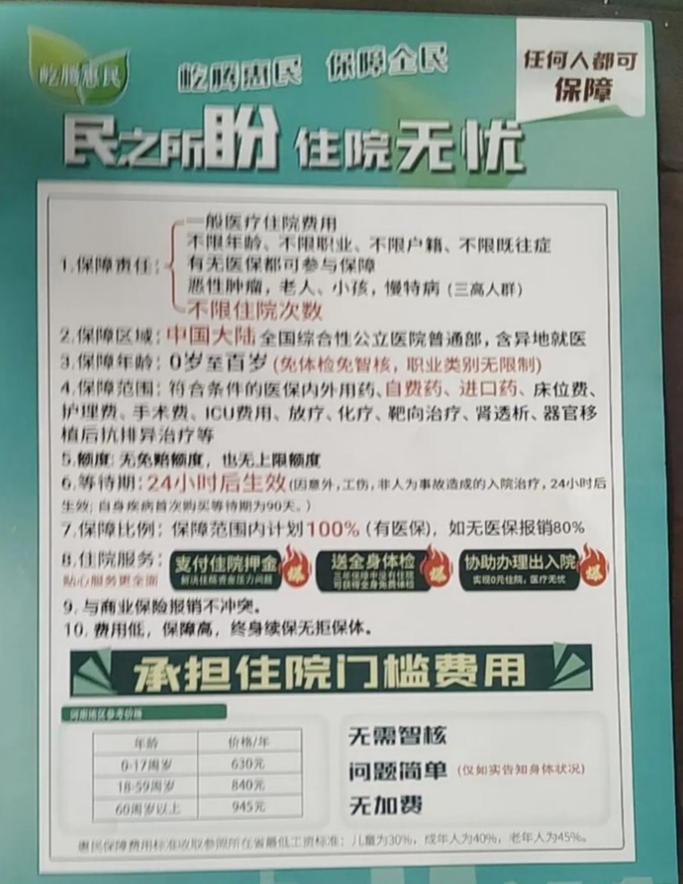 在宣传策略上,该项目的每一个细节都经过了精算。年费从500元到1200元的价格设定恰好卡在了普通消费者的可接受范围——既不像大额商业保险那样让人望而却步,也足够低廉到让人觉得占便宜。更关键的是承保条件的突破性:无免赔门槛、可带病投保、不限既往症。这些承诺在正规保险产品设计中几乎是不可能实现的,也正是这种“不可能”激发了消费者的投保欲望。