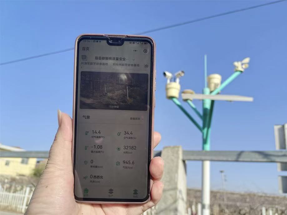 走进金渠镇田家寨村的智慧果园,果农赵军荣正坐在家里刷手机,屏幕上,园子里的温湿度、光照数据实时显示。“以前种地看老天爷脸色,现在看手机APP。”老赵笑着说,“啥时候浇水、啥时候施肥,系统比人还懂。”