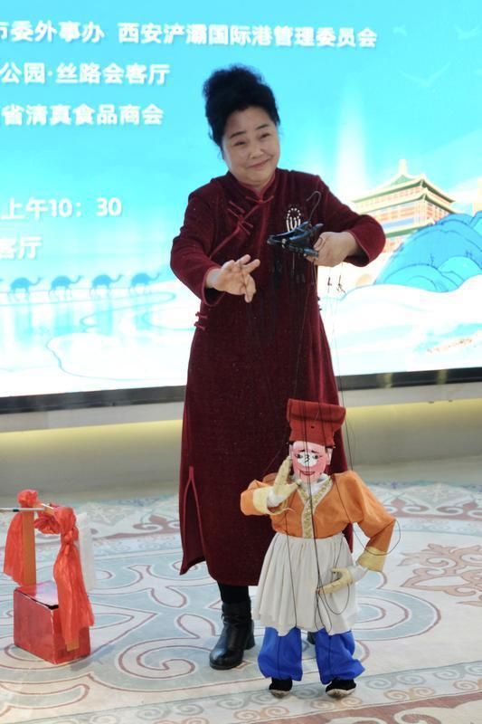 在充满秦地风味的音乐声中,谢春焕表演了提线木偶《快乐的小货郎》《孙悟空特技》。她用双手操控数十根提线,把“小货郎”的俏皮灵动、“齐天大圣”的飒爽英姿表现得淋漓尽致,观众争相与“他们”互动。
