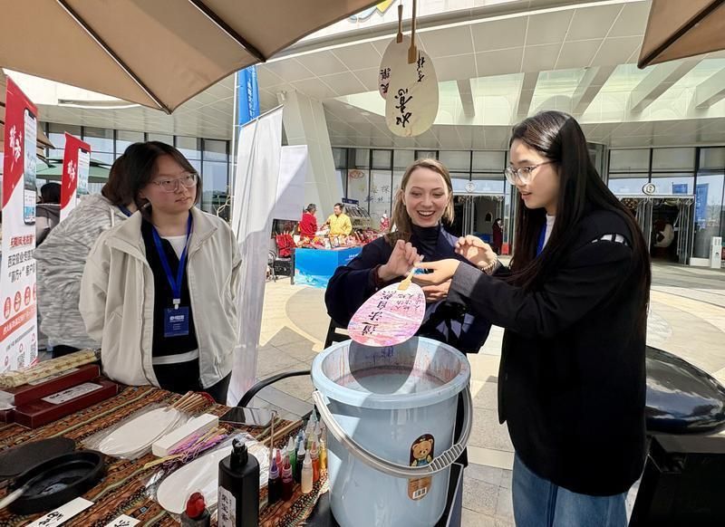 本次活动专门设置了民俗体验区,多位陕西民间艺人展示了麦秆画、剪纸和布艺技艺,引来不少中外朋友参观、选购。澄城刺绣非遗代表性传承人王春莉的展台前,运动香包、笔筒、杯垫、胸花等作品将传统技艺与时尚风格融为一体,让人爱不释手,而现场新疆舞的助兴表演,更为集市增添了色彩。