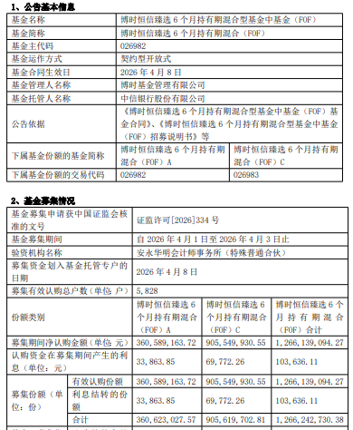 近日,博时基金发布博时恒信臻选6个月持有期混合型基金中基金(FOF)基金合同生效公告。