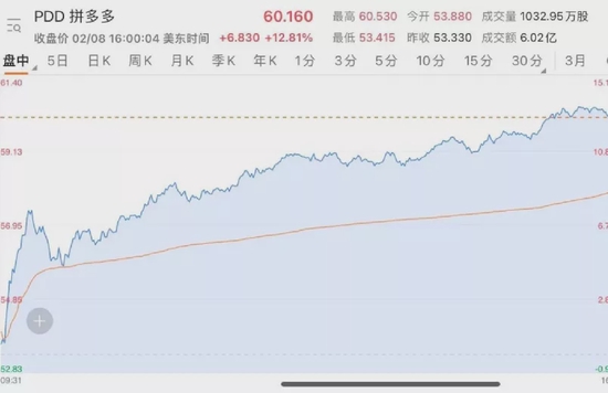 中概股周二表现亮眼,三家电商巨头集体大涨。拼多多涨近13%,市值大涨约100亿美元,约640亿人民币;阿里涨超6%,市值上涨230亿美元,约1500亿人民币;京东涨超3%,市值大涨约50亿美元,约人民币320亿人民币。