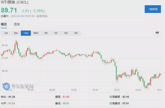 根据华尔街见闻,美国表态愿意达成相关协议后,国际原油期货周二加速回落。最终,自2014年10月以来首次收盘站上90美元关口的美油收跌2.14%,报89.36美元/桶,2月2日上周三以来首度收盘失守90美元;布油收跌2.06%,报90.78美元/桶,也处于最近四个交易日收盘最低谷。