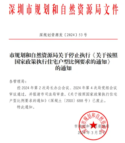 近日,一份名为“深圳市规划和自然资源局关于停止执行《关于按照国家政策执行住宅户型比例要求的通知》”的文件在网络流传。