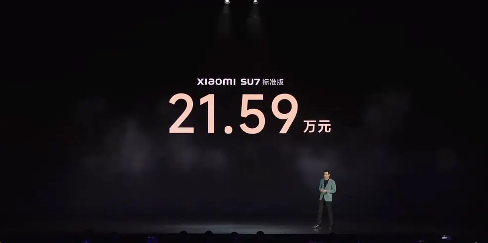 价格方面,小米SU7标准版定价21.59万元。雷军表示,这个价格小米是亏钱的。
