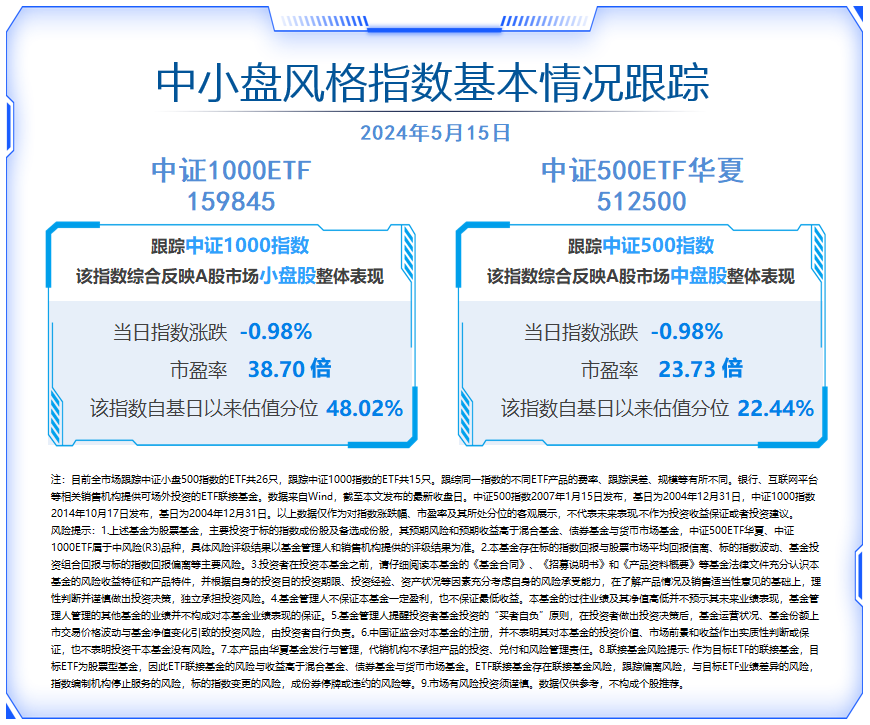 5月16日,中小盘代表指数震荡上升。资金持续关注中小盘,中证1000ETF、中证500ETF华夏等交投活跃。中证1000ETF上周日均成交额超8亿元,中证500ETF华夏上周日均成交额超3亿元,居全市场ETF前列。