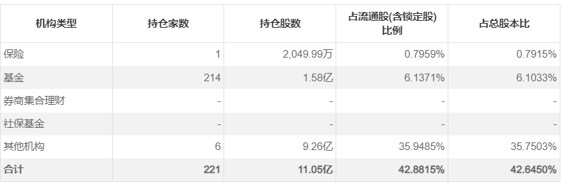Choice数据显示,截至2023年末,ST中泰合计被221家机构持仓,共计持有11.05亿股,占其总股本42.65%。其中,214只公募基金合计持有ST中泰1.58亿股,占其总股本6.1%。