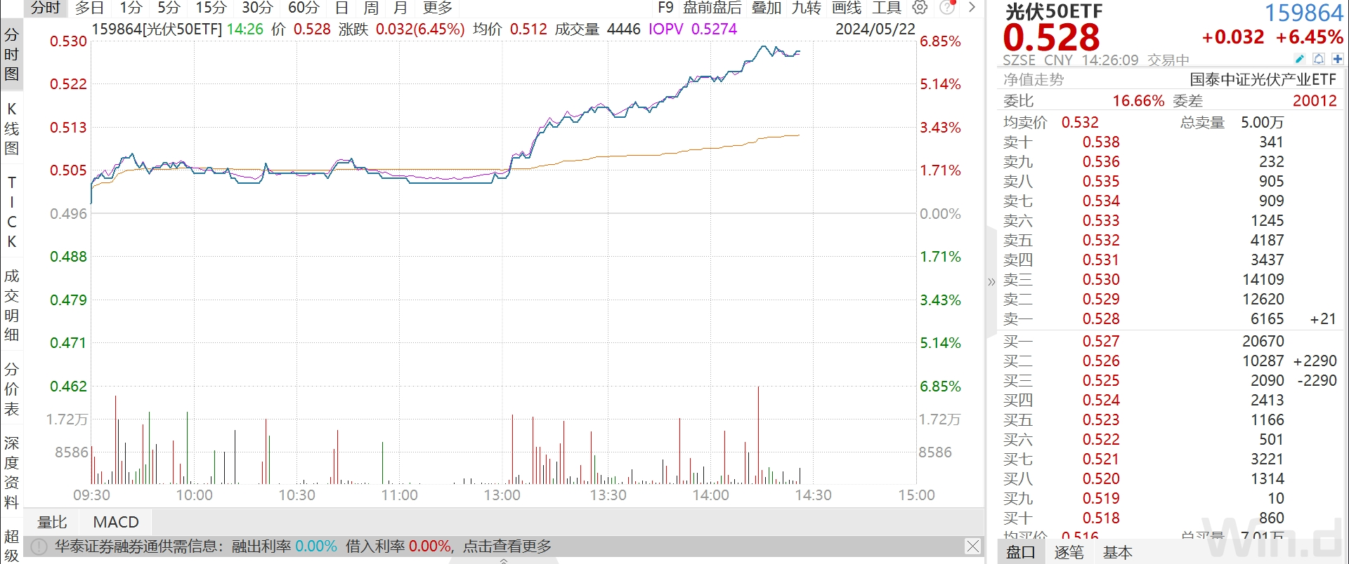 受重磅利好消息刺激,光伏板块午后发力,领涨A股,相关行业ETF——光伏50ETF大涨6%,领涨市场。
