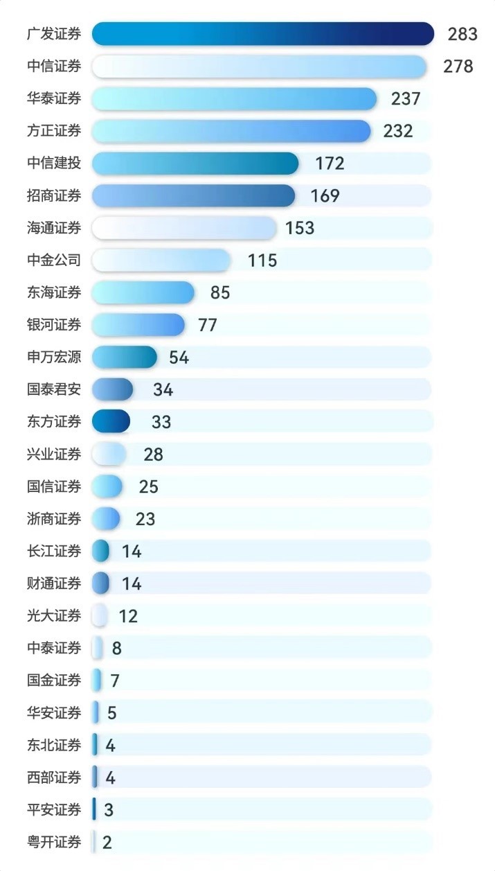 不过仅有8家基金流动性服务商B级及以上产品数量超过100只,分别为广发证券、中信证券、华泰证券、方正证券、中信建投、招商证券、海通证券和中金公司。