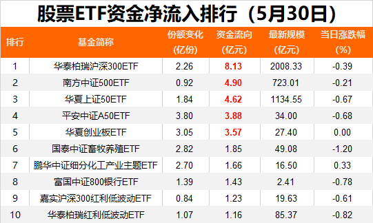 5月30日,A股全天行情震荡走弱,资金再度借道ETF入场。