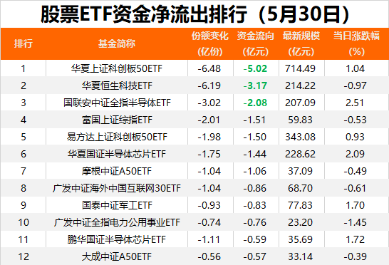 股票ETF市场资金整体小幅流入的同时,部分ETF出现较多净流出。