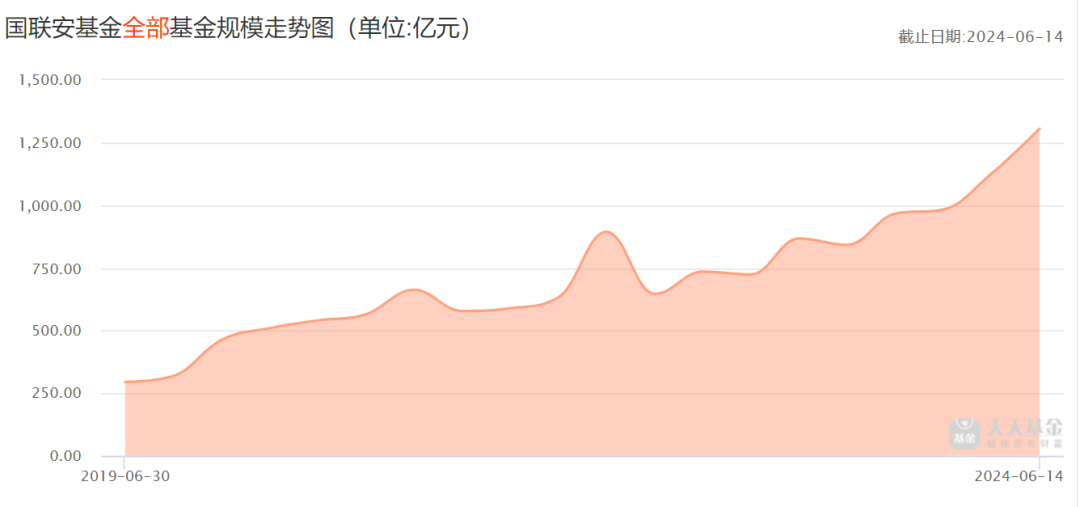 在强大的中德股东背景助力下,国联安基金实现了业绩和规模双增长。公开数据显示,截至2024年一季度末,公募基金资产管理规模达1306.03亿元,较去年底增长6.57%。其中,非货资产管理规模为1131.31亿元,行业排名39/156。