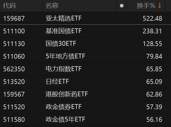 复牌后,南方亚太精选ETF成交再度活跃。7月11日,南方亚太精选ETF的成交额为13.29亿元,换手率为522.48%,也是当天换手率最高的ETF。