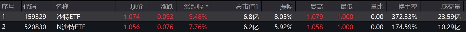 2只沙特ETF强势领跑,沙特ETF涨停。
