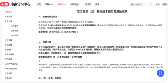 据介绍,小红书电商此前佣金(官方称基础技术服务费率)按类目有所不同,多数集中在2%-5%。“百万免佣计划”将前100万元支付交易额费率统一降至0.6%,简化商家计算。
