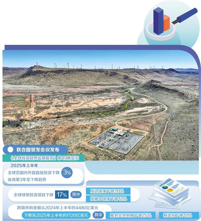 日前,联合国贸易和发展会议发布《全球投资趋势监测报告》第49期指出,2025年上半年,全球投资状况持续低迷。全球范围内的外国直接投资下降3%,已连续第3年呈下降趋势。受全球贸易摩擦升级、地缘政治紧张,以及企业对供应链风险重新评估等因素影响,投资情绪持续谨慎。