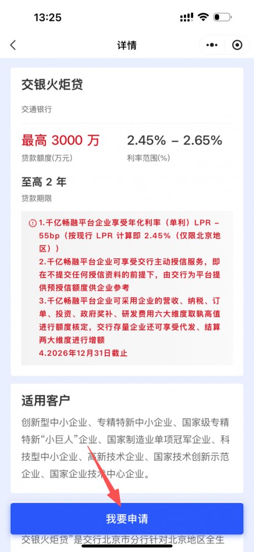 本网讯 年末资金需求旺季来袭,企业研发升级、市场拓展、产能扩容正需金融助力!由北京市经济和信息化局指导建设、北京市中小企业公共服务平台运营的 “千亿畅融” 融资服务小程序,携手中国民生银行、交通银行北京市分行推出的专属贷款,精准匹配不同企业发展需求,额度高、利率优、流程简,为企业年末冲刺注入强劲动力!