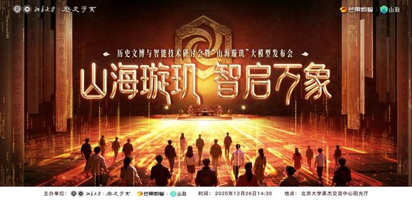 近日,“历史文博与智能技术研讨会暨‘山海璇玑’大模型发布会”在北京大学举行。本次活动由湖南广电数字文博大平台山海APP和北京大学历史学系联合主办。湖南省委宣传部、湖南省工信厅、中国科学院、北京大学历史学系、芒果TV、芒果数智等单位领导、嘉宾,以及文博界、科技界的众多专家学者出席活动,共同见证了这一文化与科技融合的重要成果发布。