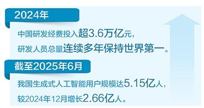 我国还拥有全球最大的市场、最丰富的应用场景。中国的老百姓拥抱创新、善用创新,这些都为技术快速迭代和商业化提供了“练兵场”。以最近两年才兴起的生成式人工智能为例,截至2025年6月,我国生成式人工智能用户规模达5.15亿人,较2024年12月增长2.66亿人。