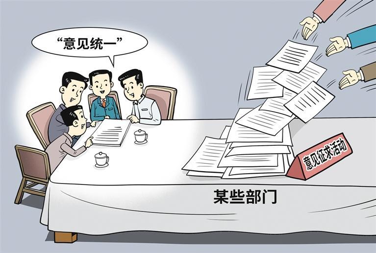 岁末年初,很多部门和单位纷纷开展意见征求活动,旨在开门纳谏、集思广益。但在实际操作中,一些所谓的“征求”仅是走走过场。有的搞“过滤式”征求,在封闭的小圈子内完成“意见统一”;有的是“甩锅式”征求,表面上问计于民,实则是为了万一决策失误,能用“已征求意见”推卸责任。意见征求本是通过广泛吸纳社会各界的智慧与诉求,让最终出台的文件更科学合理、更符合实际,让相关政策更好操作落地。“走过场”式的意见征求不仅无助于科学决策,还会影响基层治理的公信力。对此,有必要强化制度刚性,校准履职靶心,把群众满意度作为重要标尺。还应将意见征求、采纳和落实情况纳入政务公开,加大督查力度,倒逼征求者提高工作质效。