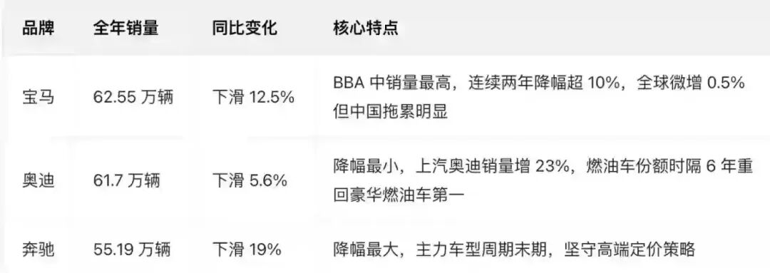 另外,在豪华品牌领域,德系三强的燃油车依旧含金量十足,2025年BBA(奔驰、宝马、奥迪)在华的燃油车销量占比仍超过70%。