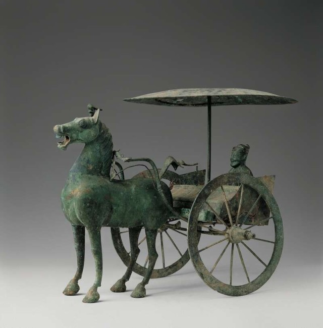 马,自古便是融贯华夏文明脉络的重要伙伴与精神象征。展览甄选来自甘肃省博物馆、甘肃省文物考古研究所、咸阳博物院及上博馆藏的16件/组马主题文物,分为“鞍马征尘”“昭陵六骏”“骏影流光”“诗情画意”等版块,展现中华马文化的多元内涵与吉祥寓意。观众将在其中邂逅与“马踏飞燕”同出于武威雷台汉墓的青铜车马,感受汉代车骑仪仗的赫赫威仪;欣赏凌空踏云的玉仙人奔马,品味汉代玉雕中的灵动神韵;近观出自吐谷浑墓葬的唐代骑马击鼓俑,领略丝路交往的生动瞬间;在徐悲鸿《饮马图》与张大千《临曹霸玉花骢图》中,体会墨韵流淌中的马魂风骨。