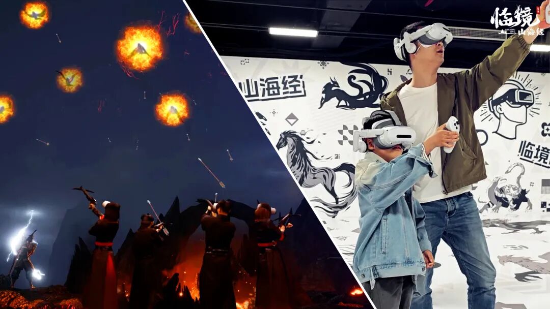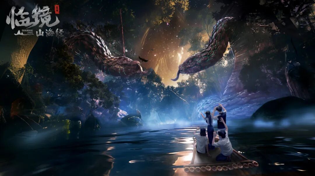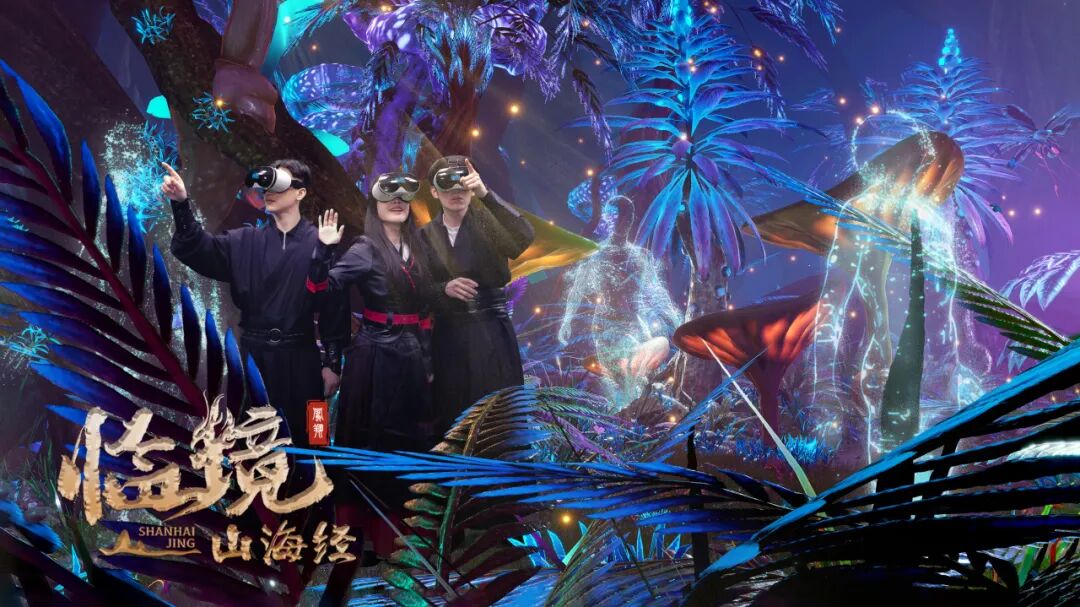 以《山海经》中所记录的山海胜景、奇珍异兽、神仙妖怪等为灵感,结合原创冒险故事与影视级置景,搭配 VR 设备、大空间激光定位技术、动感装置等,“临境山海经”VR 沉浸全感剧场打破了 VR 体验固定位置的局限,让游客在虚拟空间内依靠自己的双脚自由行走,身临其境地穿行于山海异世之中,感受上古奇书的壮美瑰丽。