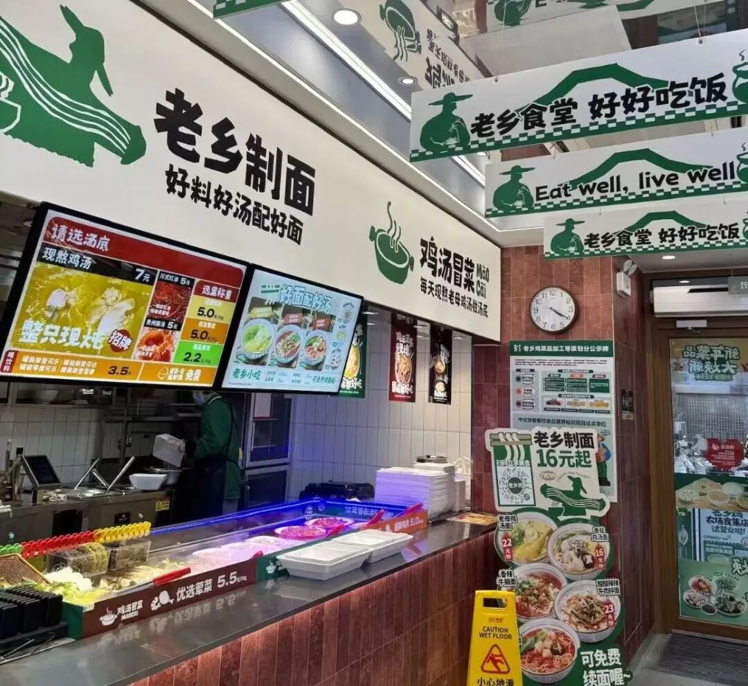 据了解,老乡鸡在上海的会员食集店,不仅售卖传统的快餐产品,还售卖此前推出的老乡制面、老乡茶咖等,并新增冒菜品类。为凸显多品类优势,各品类均设置了独立区域,分工明确。