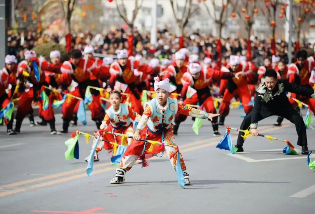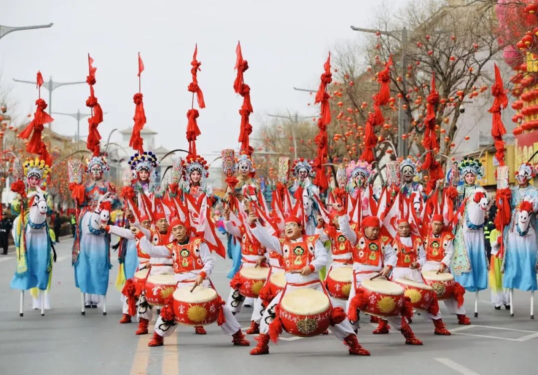 下午1时许,伴随着震天的锣鼓声和高昂的唢呐声,各支秧歌队依次从集结区舞向古城街头。一时间,现场彩扇翻飞、绸带飘扬,演员们踏着欢快的鼓点尽情舞动,将新春的喜庆气氛一次次推向高潮。