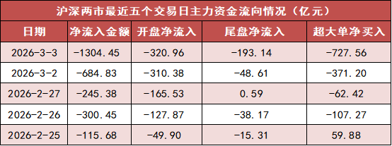 今日沪深两市主力资金开盘净流出320.96亿元,尾盘净流出193.14亿元,两市全天主力资金净流出1304.45亿元。