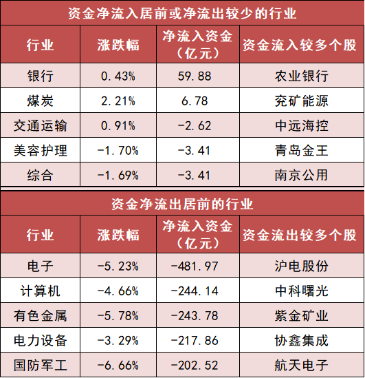 3.银行等行业实现净流入