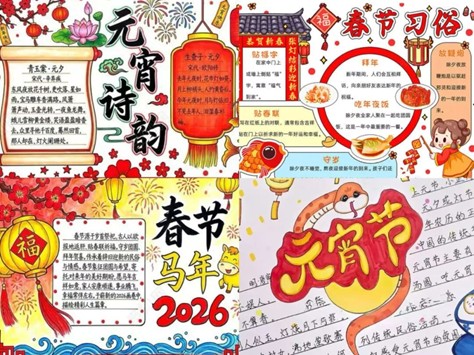 当元宵的花灯点亮夜色,当笔尖在手抄报上流淌墨水,不妨以诗为印,把千年的浪漫绘进纸间。从“去年元夜时,花市灯如昼”到“今年元夜时,月与灯依旧”,在平仄的律动与斑斓的色彩里,同学们不仅用诗词串联起传统的温度,更在一笔一画中,把元宵的诗意,藏进每一份亲手创作的美好里。