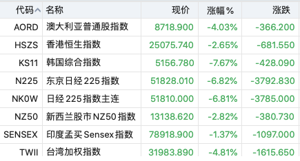 3月9日,日韩股市开盘大跌,日经225指数下跌超3000点,跌幅超6%。韩国KOSPI指数跌幅一度超7%。亚太股市遭遇“黑色星期一”。
