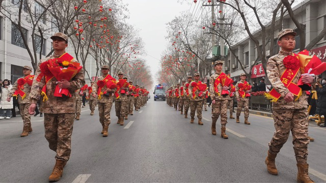 活动中,横山老腰鼓走上街头为57名新兵壮行。希望他们带着家乡人民的殷切期盼与美好祝福,阔步踏上新征程,用热血与担当书写无悔青春,以忠诚与坚守守护万家灯火。