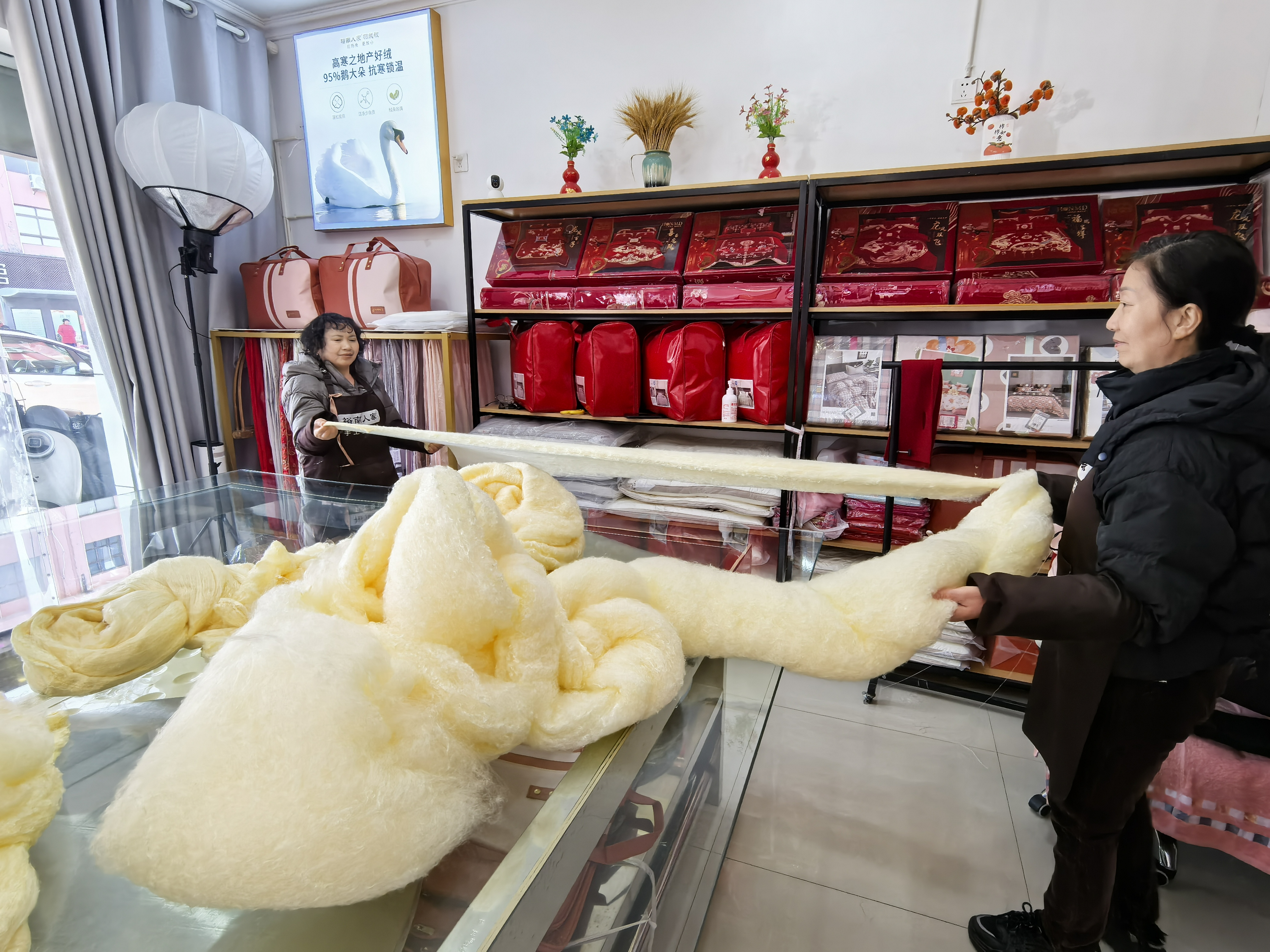 宗莉莉一边坚守着纯手工的古法技艺,一边还带着老手艺紧跟时尚潮流。抖音短视频、微信视频号上常常能刷到她的身影,她的目的就是想让更多年轻人了解这项非遗技艺。去年,店里销售额达到了192万元,加工蚕丝被约1500条,用实实在在的成绩证明,非遗手艺同样能够焕发出强大的市场活力。